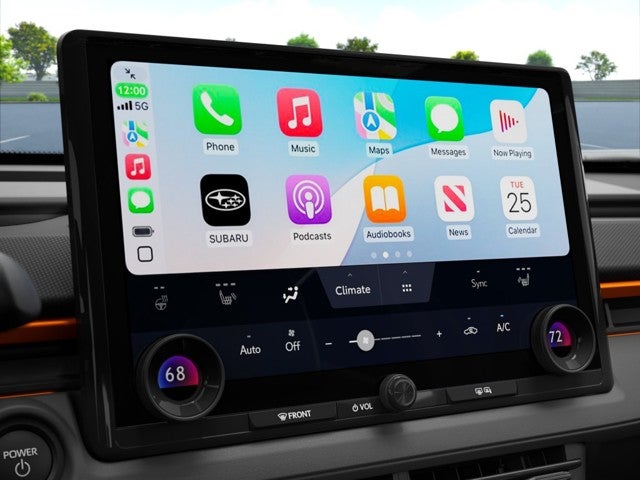 - Radio: Subaru 14" Multimedia System -inc: AM/FM stereo, HD radio, multi-touch gesture high resolution display screen, cloud navigation system (navigation subscription required), Bluetooth® audio streaming and hands-free phone connectivity (refer to subaru.com for cell phone compatibility), Bluetooth® hands-free SMS text messaging connectivity (refer to subaru.com for cell phone compatibility), SiriusXM radio (4 months free trial included/subscription required after), smartphone integration: Android Auto and Apple Carplay w/full screen view and wireless connection, integrated streaming (30 days trial included/subscription required after), assistant w/dual-zone voice control system w/driver and passenger headliner microphone, steering wheel talk switch and audio system, basic function operation, media operation and audio tune operation, USB and Over The Air (OTA) audio system update, USB/Map Over The Air (MOTA) navigation system update, steering wheel control switches for audio and Bluetooth®, 6 speakers, dual Qi (15W each), wireless charging pad, illuminated driver USB C input/charge port and illuminated passenger USB C charge port