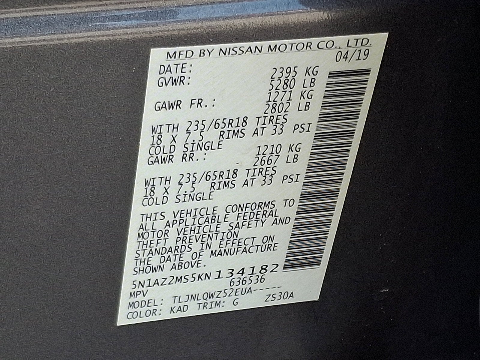 - Front Tire Size: P235/65TR18